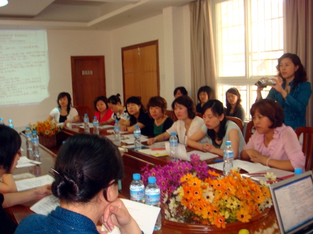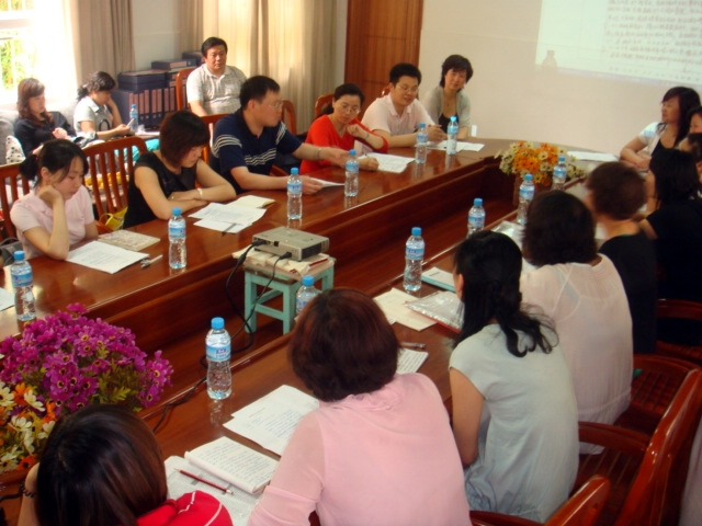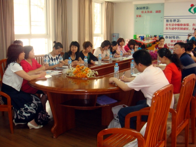 5月19日上午,武汉市教科院研究员张敏、湖北省特级教师何磊和武昌区教研员王红芳等一行数人在洪山区教育局董缀文科长的陪同下来到幼教部,进行湖北省“园本教研制度建设项目”课题中期检查。 检查组听取了袁海霞老师关于课题研究的基本情况,数学教研组组长丁媛重点介绍了数学教研组前期的研究过程。