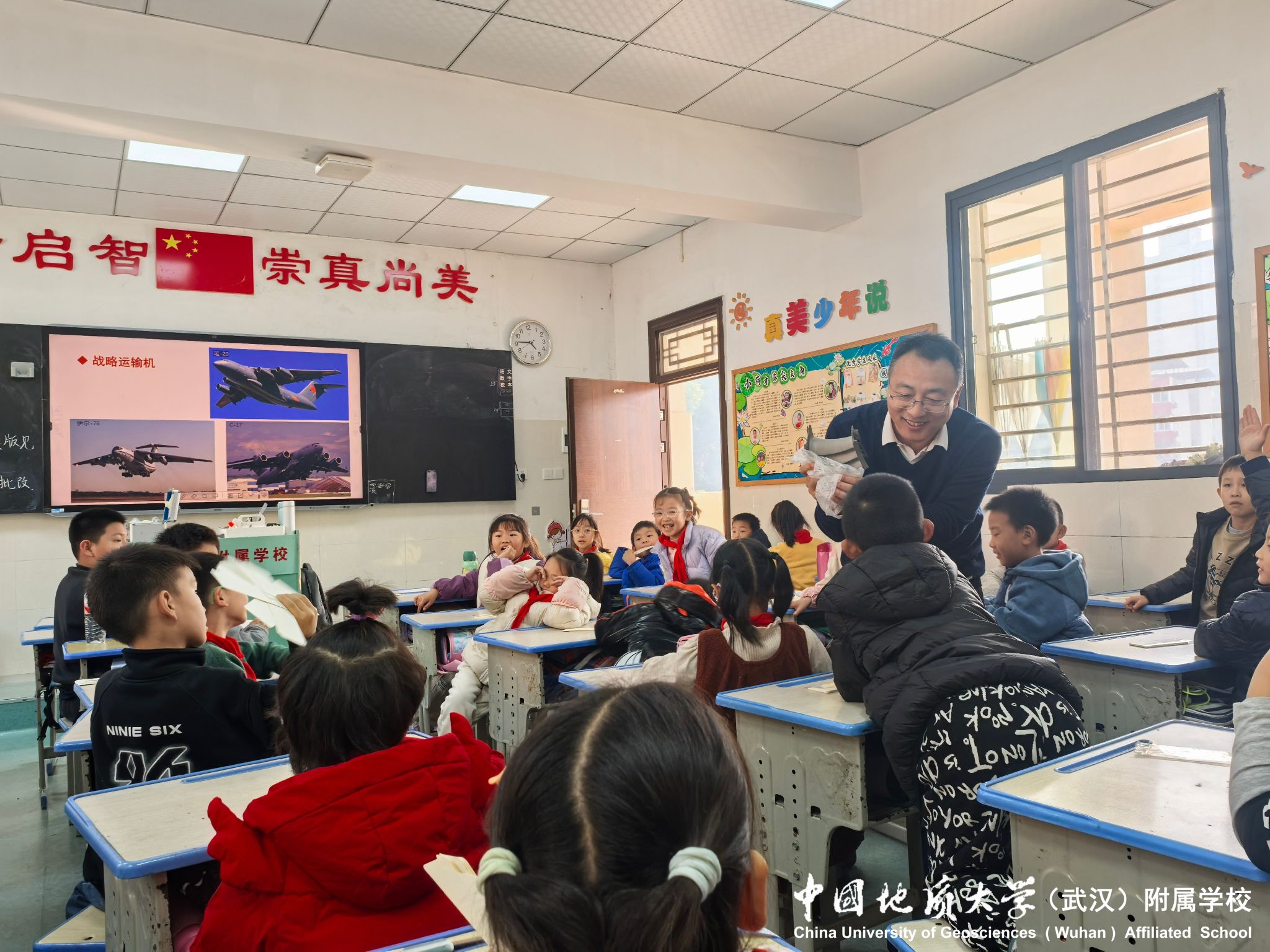 (通讯员:孙茜)2025年12月14日上午第四节课,李梦姝爸爸靳洪允教授于百忙之中莅临地大附校202班,跟小朋友亲授了一节《大飞机与纳米涂层》科普讲堂,讲座内容科学详实,通俗易懂。靳教授还别具匠心,将许多枯燥无味的专业术语转换成了二年级小学生能够听懂的语言。整节课孩子们听得津津有味,收获满满。