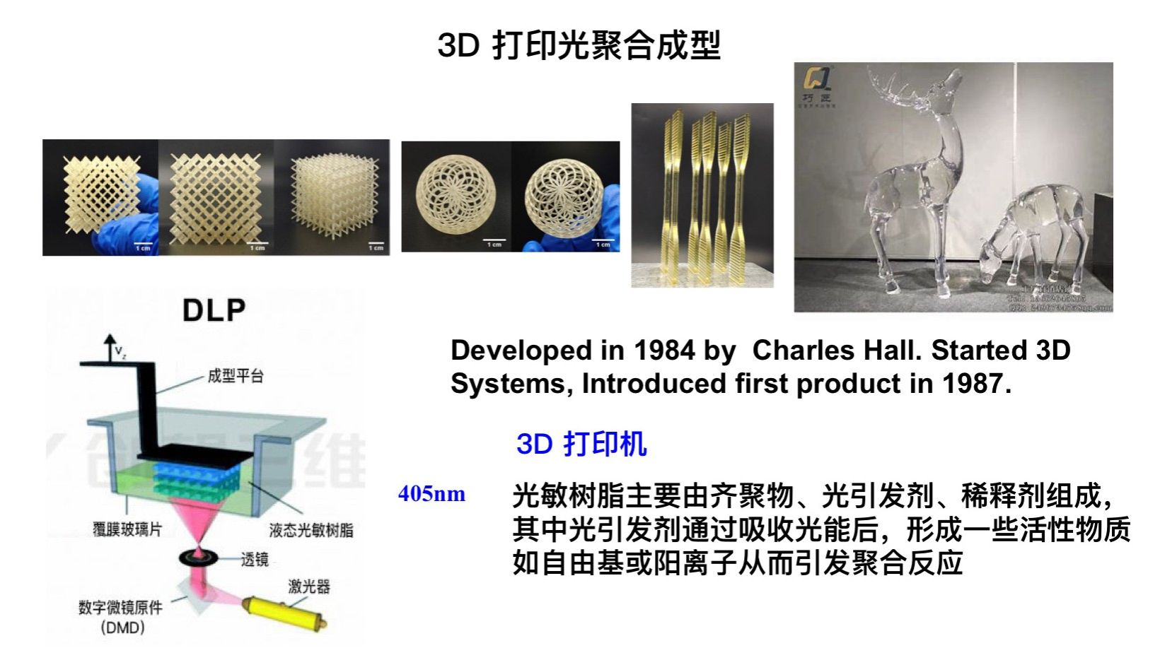 讲座重点介绍了3D打印的光聚合成型原理,通过图示展示液态树脂如何在光照下逐层固化成型。王晟汉爸爸还讲解了该技术在多个领域的应用:医疗方面可制作牙齿、人工肺泡等器官模型,帮助医生术前规划;军工领域用于制造航空航天装备零件,提升装备性能。