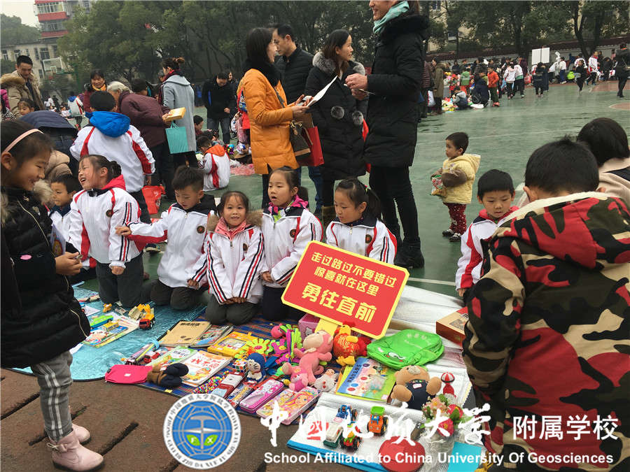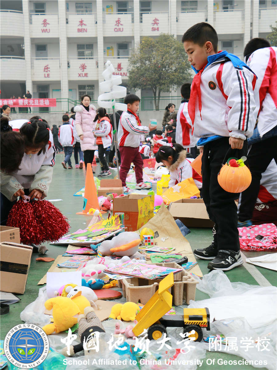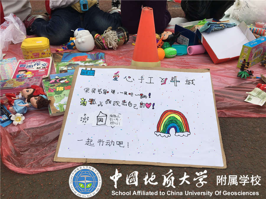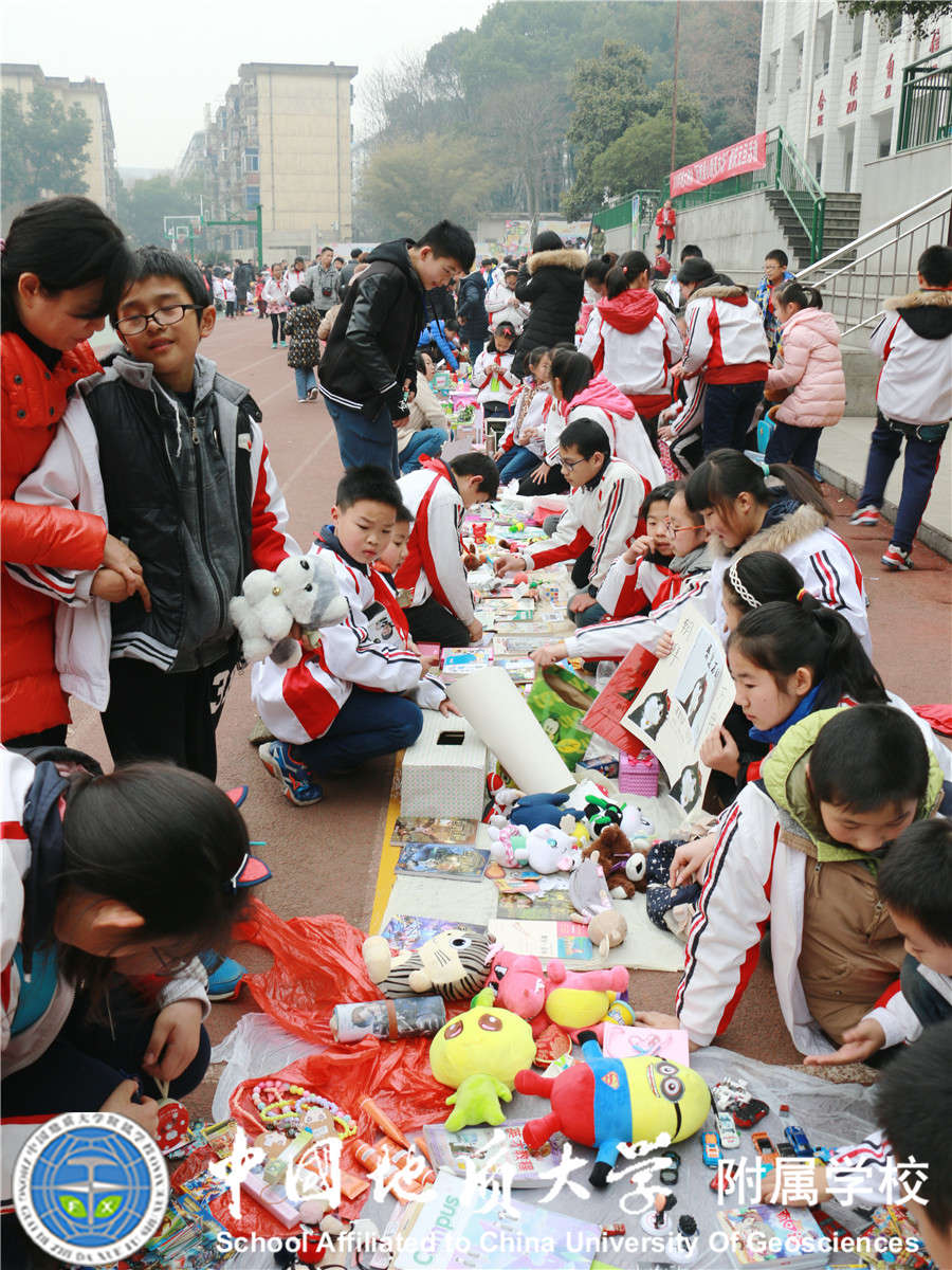 2017年12月29日我校大队部又与中国地质大学志愿者协会联合开展"崇真尚美 爱心义卖"元旦爱心跳蚤市场活动,小学部21个中队的少先队员全部参加,同学们将自己义卖的钱捐赠给 "事实孤儿"伙伴们,得到了家长们的大力支持,活动过程中看到同学们提前准备好的展板,义卖宣传单等让老师和家长们感动不已,所有同学都在尽自己所能想要为"事实孤儿"们奉献自己的一份爱心,此次活动不仅锻炼了同学们的沟通能力,将闲置的物品通过自己的能力进行义卖,还为需要帮助的"事实孤儿"们奉献了爱心!