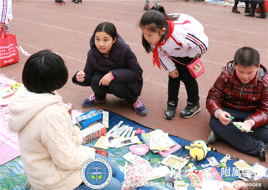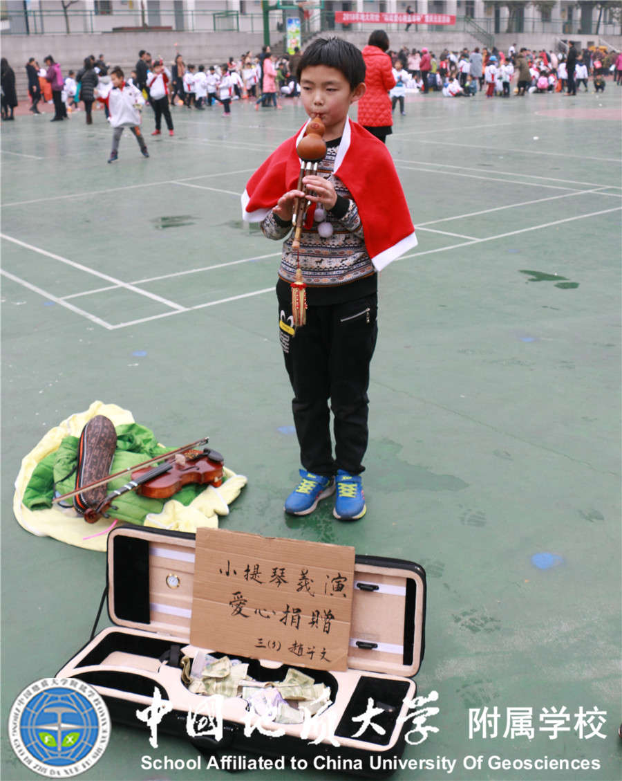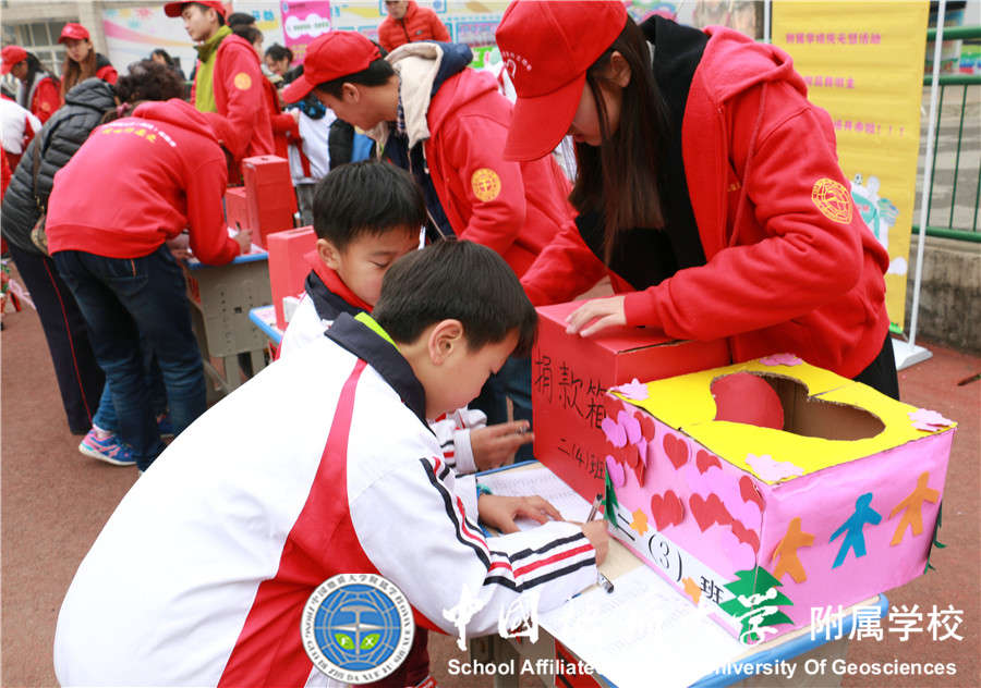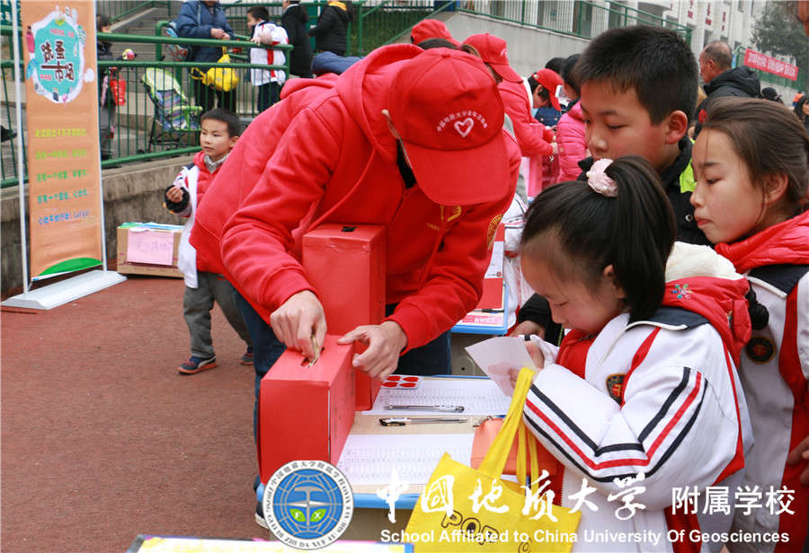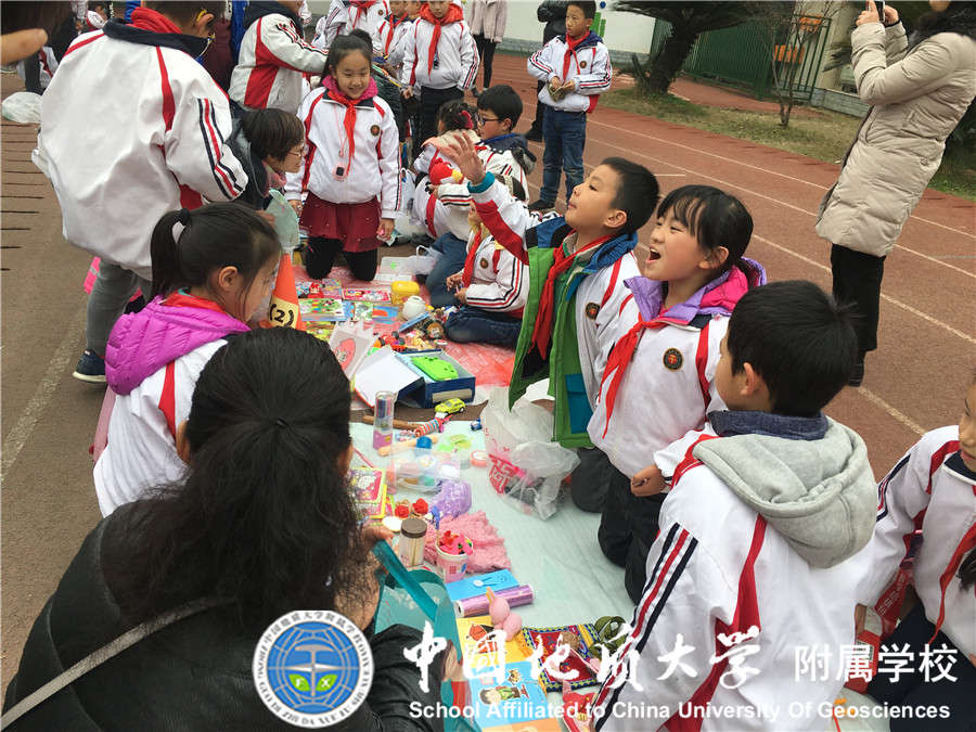 2017年12月29日我校大队部又与中国地质大学志愿者协会联合开展"崇真尚美 爱心义卖"元旦爱心跳蚤市场活动,小学部21个中队的少先队员全部参加,同学们将自己义卖的钱捐赠给 "事实孤儿"伙伴们,得到了家长们的大力支持,活动过程中看到同学们提前准备好的展板,义卖宣传单等让老师和家长们感动不已,所有同学都在尽自己所能想要为"事实孤儿"们奉献自己的一份爱心,此次活动不仅锻炼了同学们的沟通能力,将闲置的物品通过自己的能力进行义卖,还为需要帮助的"事实孤儿"们奉献了爱心!