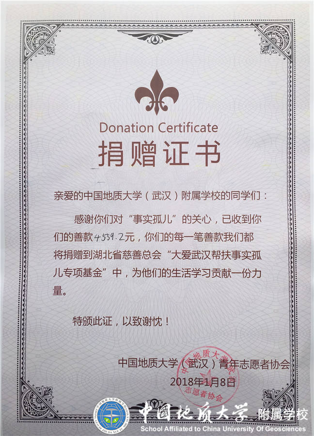 为了表达对同学们爱心的感谢,大爱武汉为每个有爱心的班级准备了一份小小的证书,这份证书是送给每位有爱心的同学,也希望同学们将爱心继续传递下去,多多帮助身边需要帮助的人!