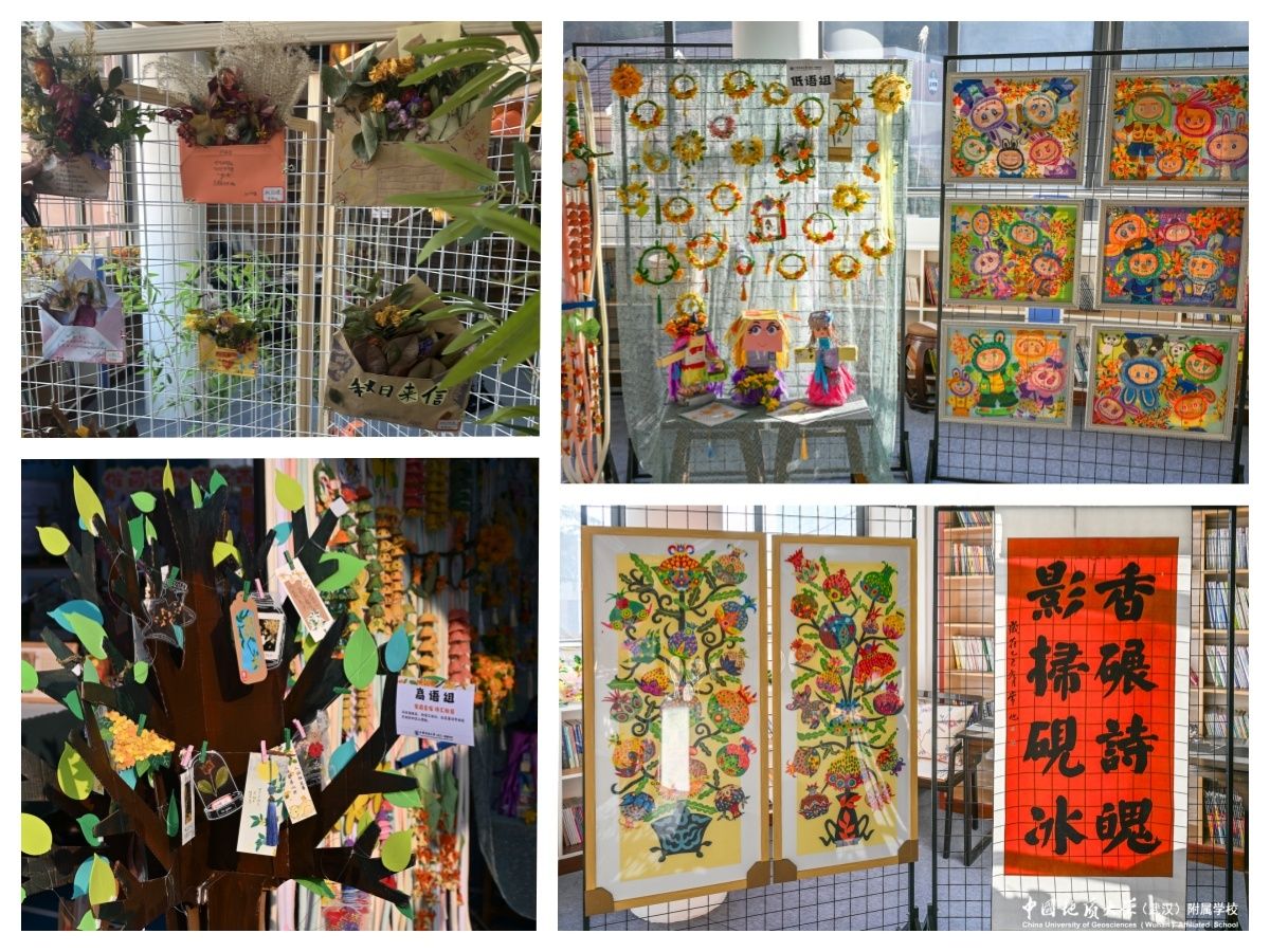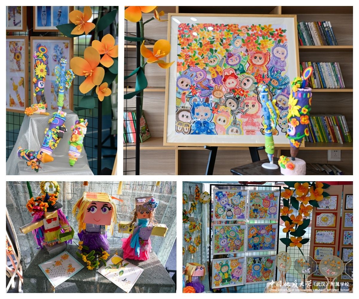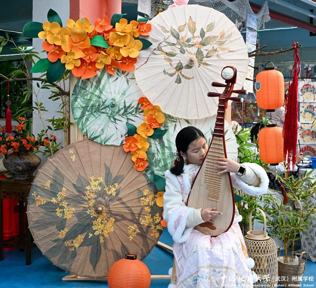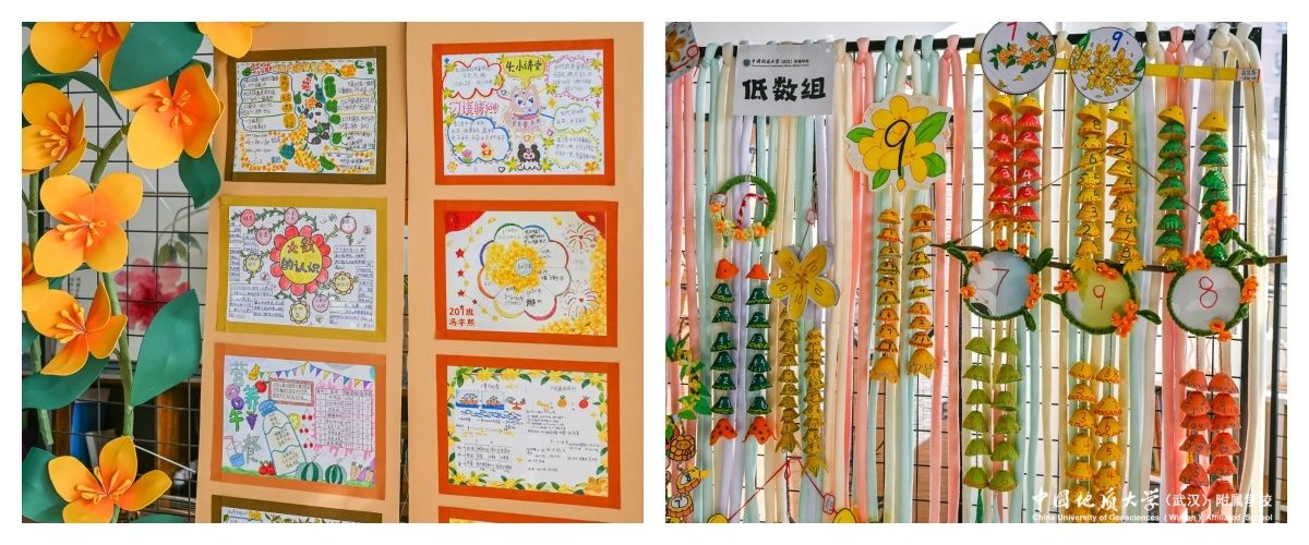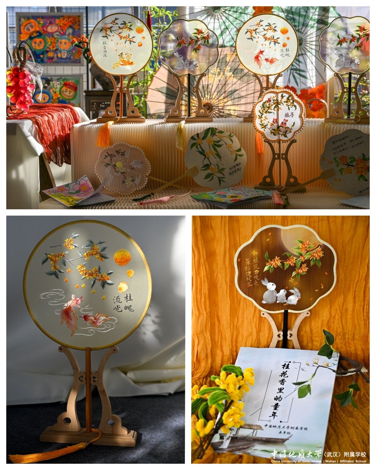 展区内汉服学子轻弹琵琶,悠扬乐声与清雅桂香交织。孩子们既是多元实践的创作者,更是文化的传承者、素养的提升者。他们在轻松愉悦的氛围中感知美、创造美、传承文化,这正是地大附校以特色作业减负提质的生动写照。