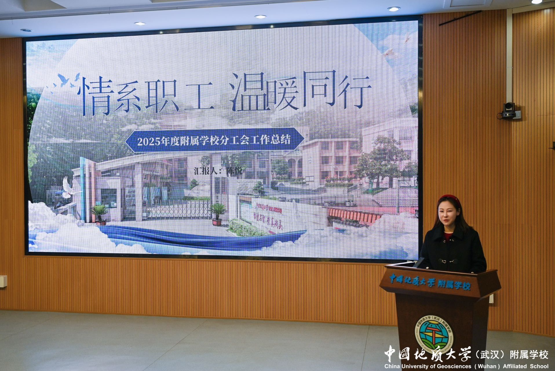 分工会主席陈悦作工会工作报告,总结了2025年工会在民主建设、帮扶关怀、教师发展及文体活动等方面的扎实成效,并提出未来将持续深化民主管理、优化服务举措,切实当好教职工的“娘家人”。