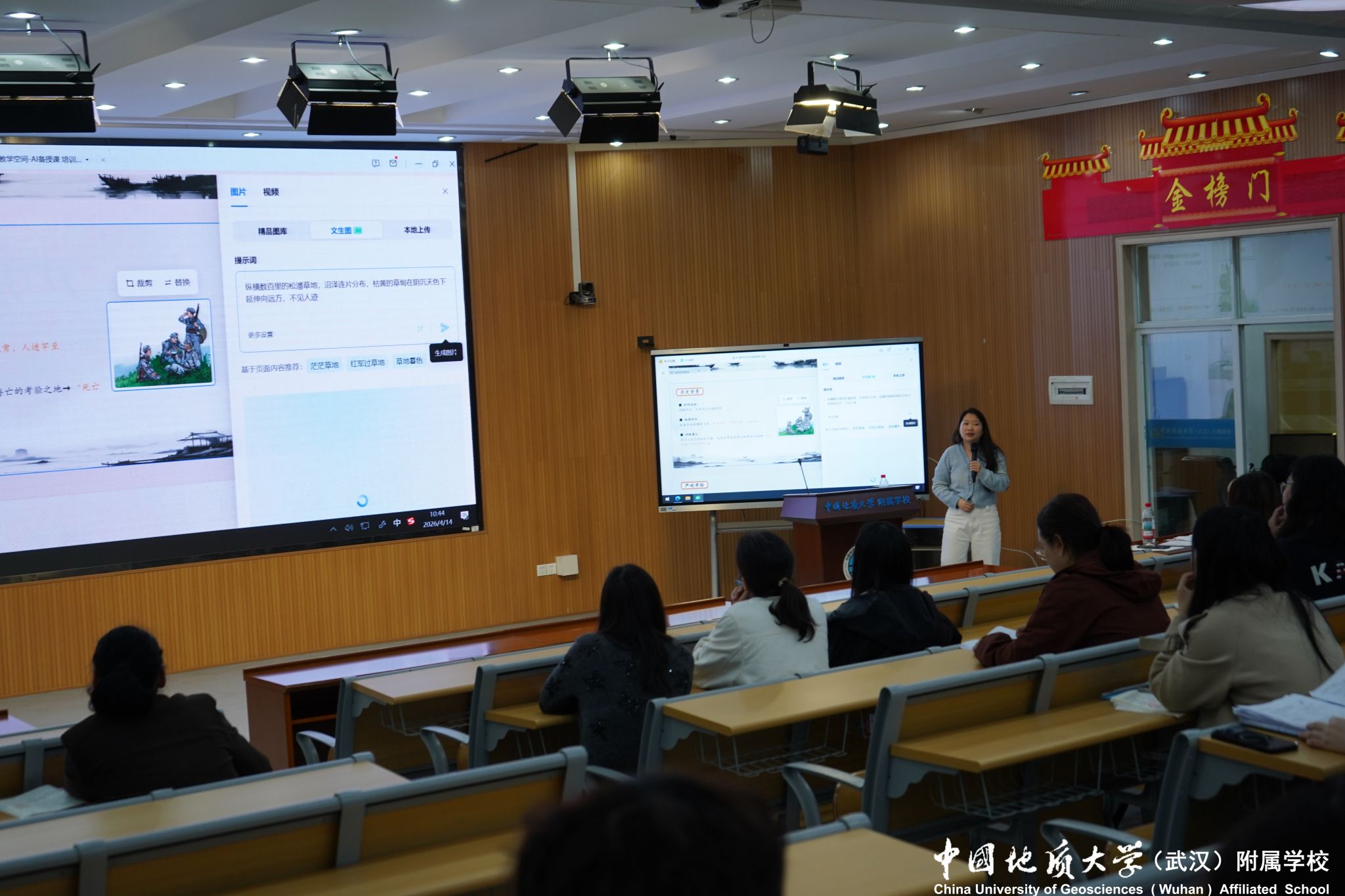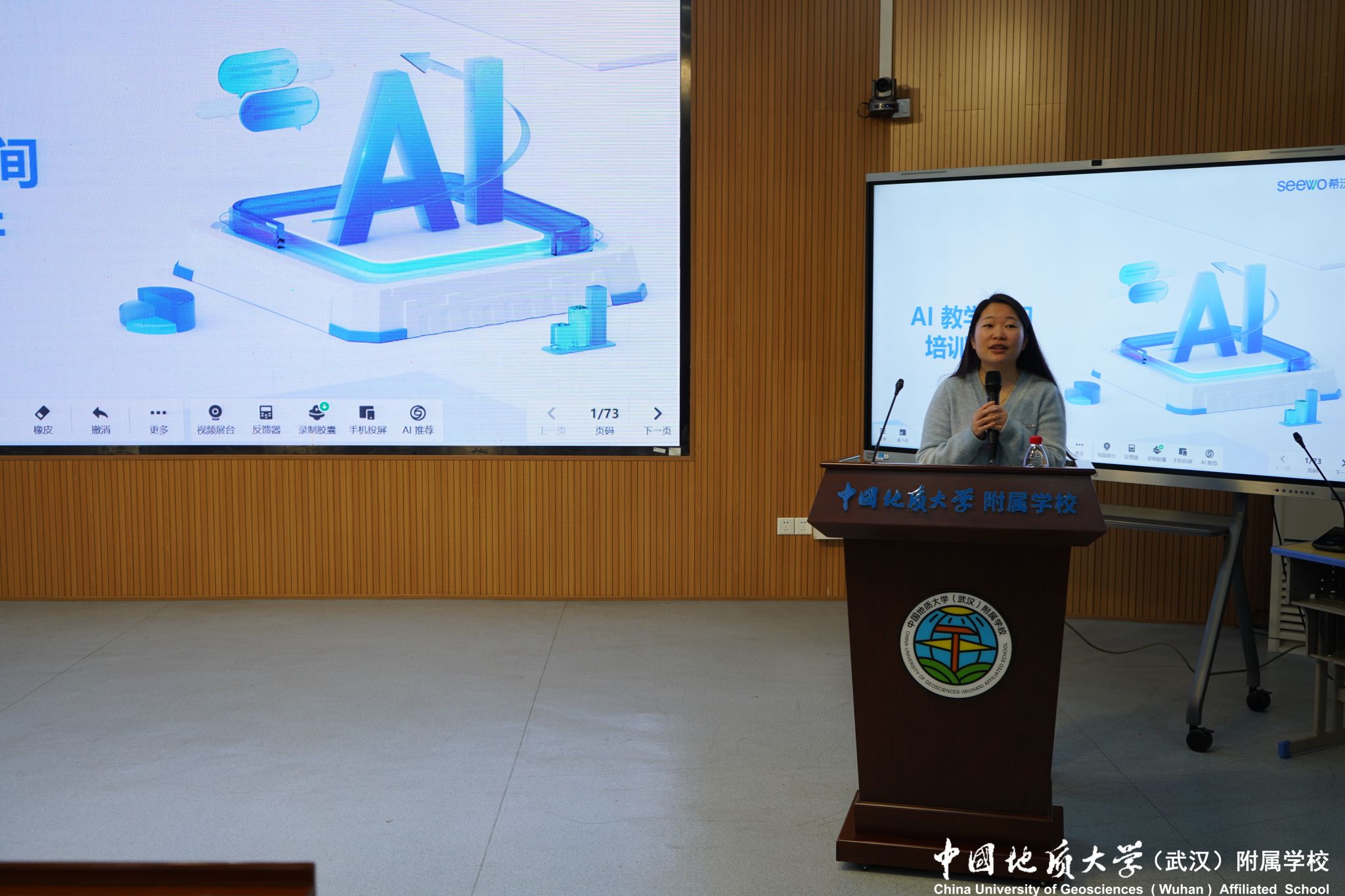 (通讯员:周丹)为加快教育数字化转型,推动人工智能与教育教学深度融合,4月14日上午,中国地质大学(武汉)附属学校开展《AI赋能教学——希沃AI教学空间》专题培训,全体教师参加。本次培训特邀希沃公司讲师孙思思主讲,由学校信息中心主任潘明望主持。