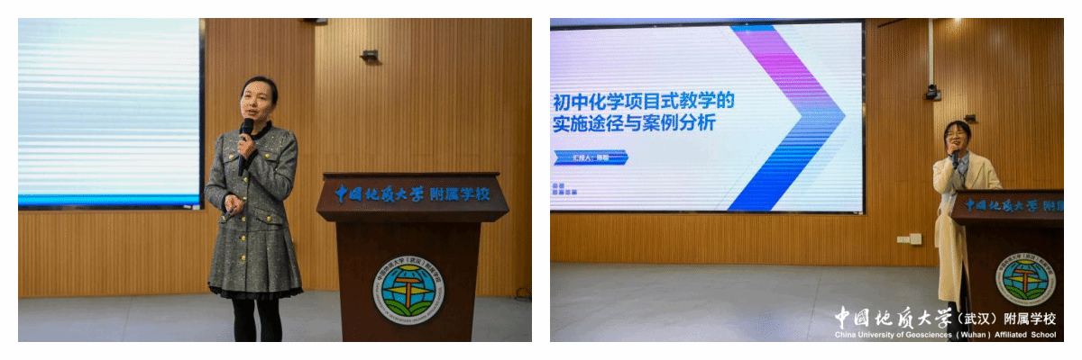 接着分别由武汉市第一初级中学东校区校长、湖北省特级教师李少坤、武汉市第一初级中学陈亚妹老师、武汉市江夏区庙山长城中学陈聪老师、武汉市翠微中学罗旋老师分别为大家做了《数字赋能“教-学-评”一体化》、《五项技能比赛经验交流》、《项目化学习理论与实践》、《实验精品课的选题与制作》专题报告。老师们的报告理念先进、案例丰富、逻辑严密,既具理论高度又富实践指导意义,展现教育信息化背景下化学教学的创新潜力。为一线教师开展项目式教学提供了系统框架与可复制经验。