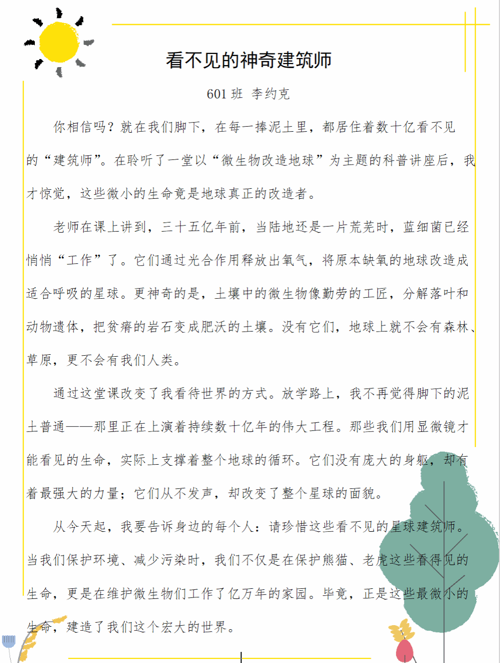 从“地球改造师”的硬核知识,到“微生物作画”的浪漫实践,这堂由民盟地大委员会科普组筹划的科普课,让微观世界的伟大,悄悄在少年心中埋下了敬畏与好奇的种子。那些藏在培养皿里的彩色菌落,那些写在纸上的真挚文字,都是科学梦想发芽的声音——愿这份热爱,能陪他们在探索之路上,走得更远、更精彩。(编辑:吴瑛婷 审核:罗红兵)