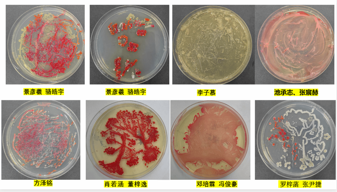 最让人期待的“微生物作画”环节,把课堂推向了高潮。戴上手套的孩子们,小心翼翼地用接种环蘸取不同菌种,在无菌培养皿里勾勒线条:有的画起小树,有的设计星空,有的创作了专属班级徽章,仿佛在微观画布上,挥洒着天马行空的想象力。