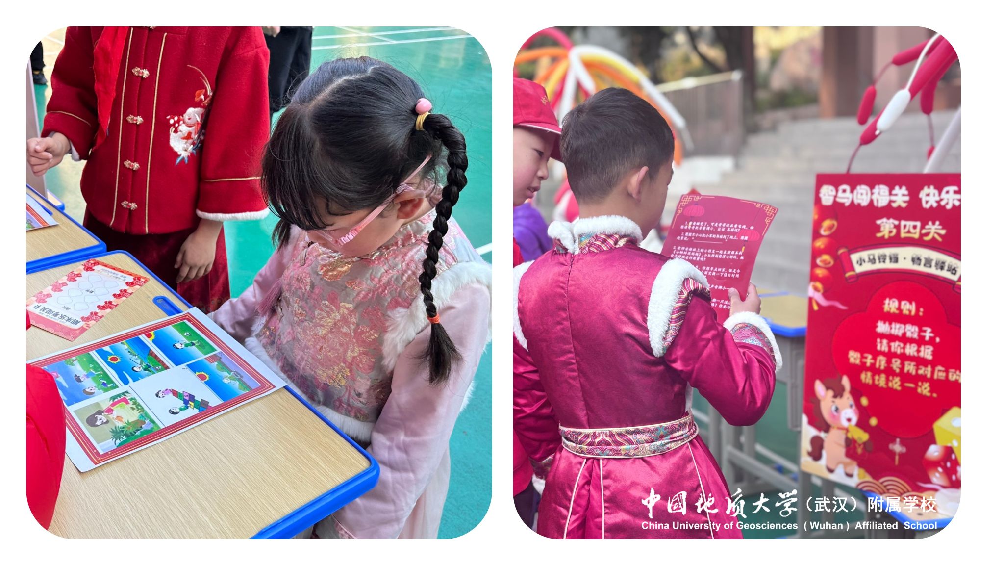 (通讯员:陈雅琴、邓谊萍)“骏马踏春辞旧岁,福运临门启新程。”为落实“双减”政策,让一、二年级孩子在趣味互动中展示本学期学习成果,地大附校低年级组的老师们紧扣马年新春氛围,深耕新课标与教材,挖掘语文、数学学科知识与趣味闯关的结合点,于2026年1月15日上午举办了“智马闯福关,快乐伴成长”游园闯关活动。